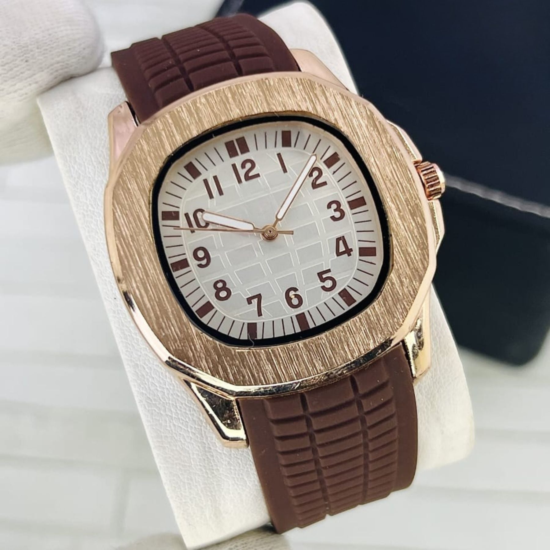 Stylish Nautilus design watch with durable rubber strap. Comfortable, adjustable fit—perfect for men, boys, and girls. Ideal for sports and outdoor activities.